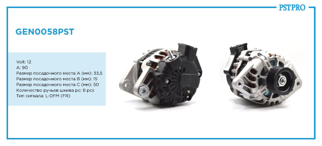 ХарактеристикиVolt: 12 A: 90 Размер посадочного места A (мм): 33,5 Размер посадочного места B (мм): 15 Размер посадочного места C (мм): 50 Количество ручьев шкива pc: 6 pcs Тип сигнала: L-DFM(FR)