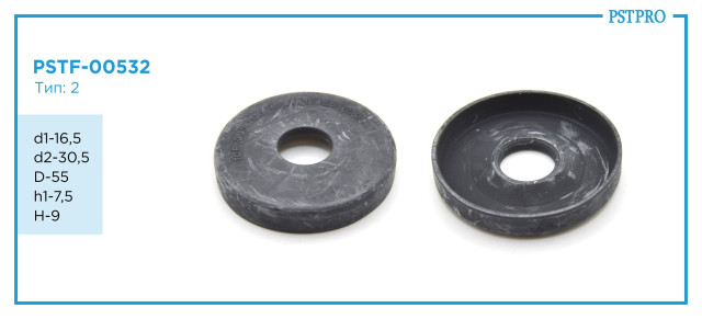 Рулевая рейка также влияет на общую динамику автомобиля, что делает его более стабильным при движении на высоких скоростях или на сложных участках дороги. Верхний защитный колпачок d1-16,5 d2-30,5 D-55 h1-7,5 H-9 Тип: 2 помогает снизить усилия при управлении, делая поездки комфортными и менее напряженными.