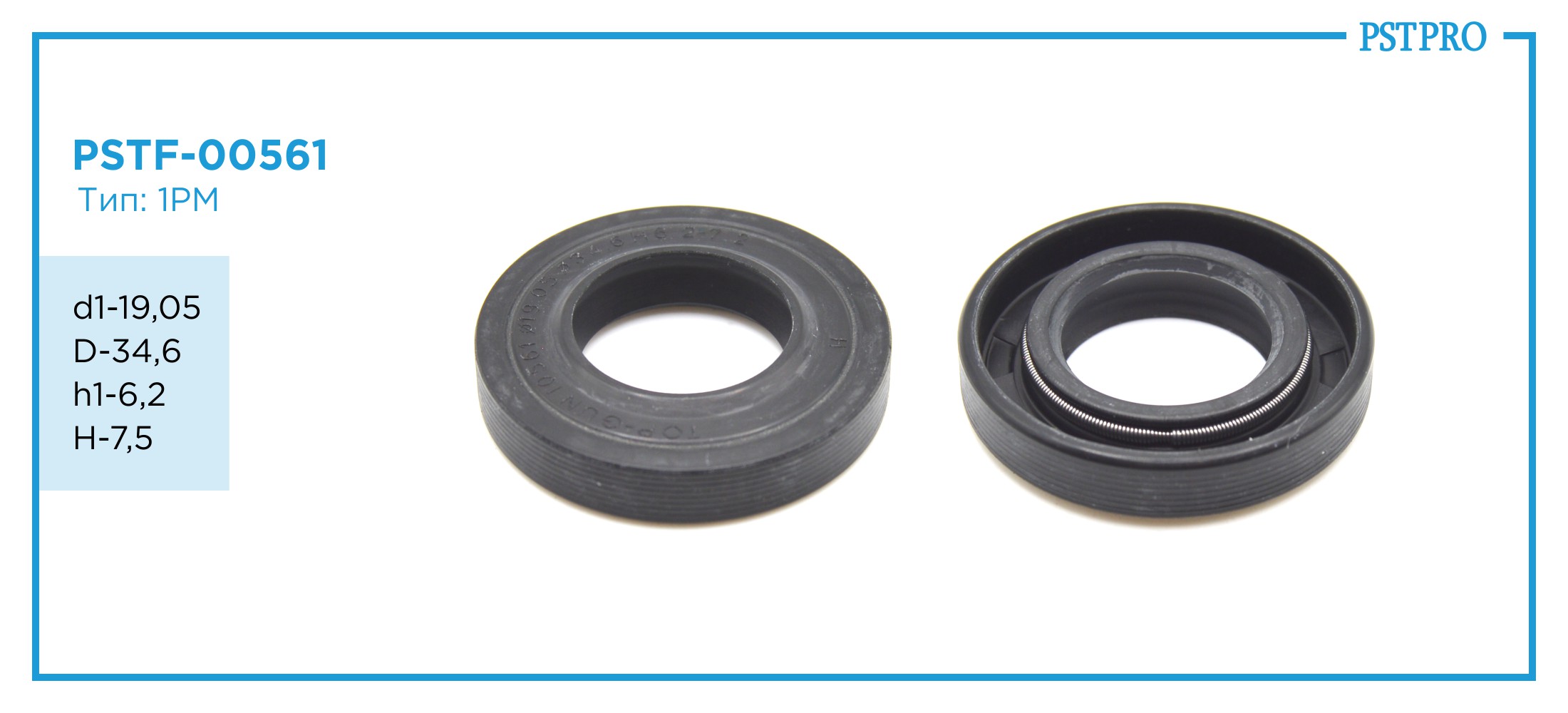 Технические характеристики Сальник d1-19,05 D-34,6 h1-6,2 H-7,5 Тип: 1PM: