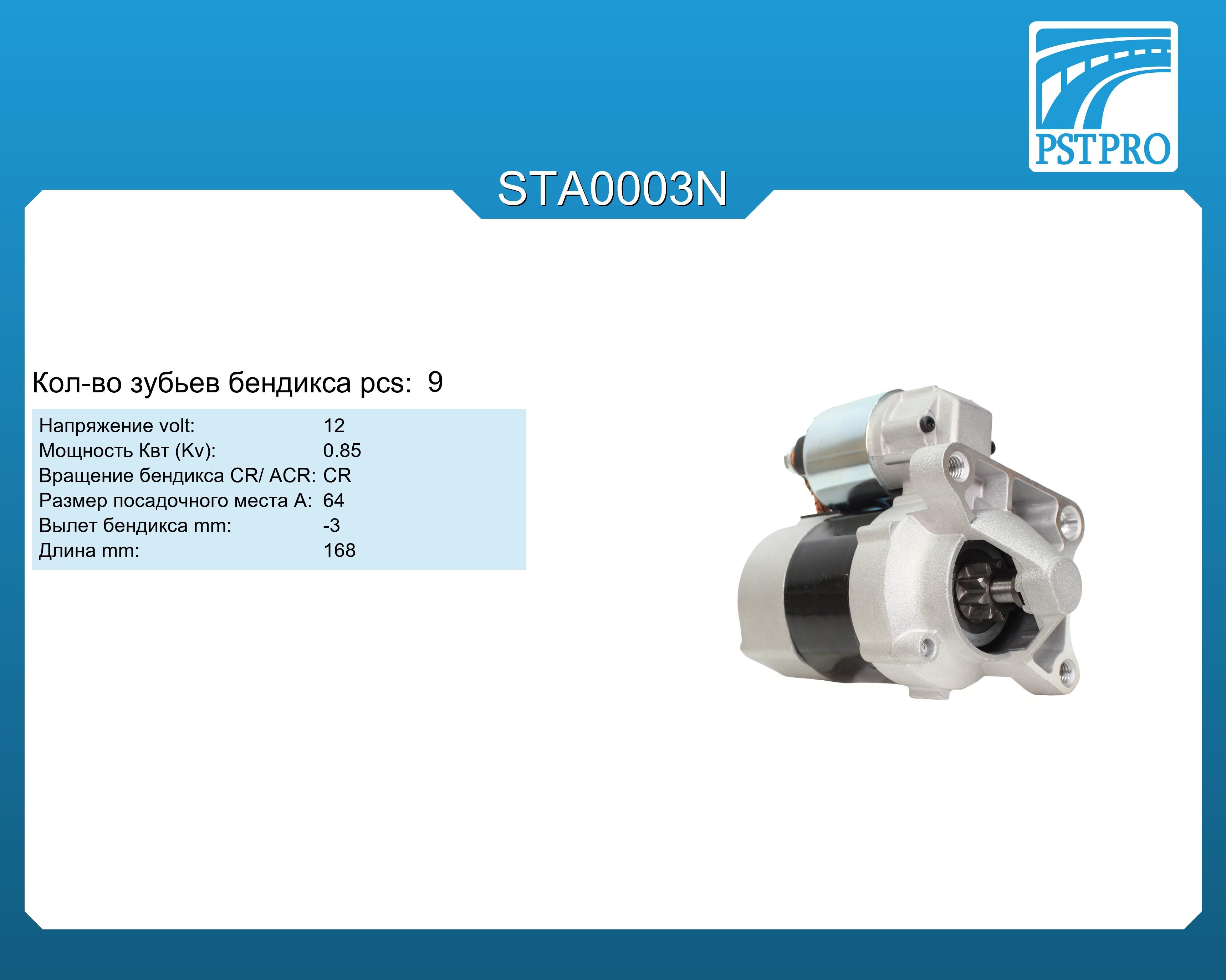 ХарактеристикиVolt: 12 Kv: 0,85 pcs: 9 Вращение: по часовой (CR) A: 64 Вылет бендикса: -3 Длина: 168
