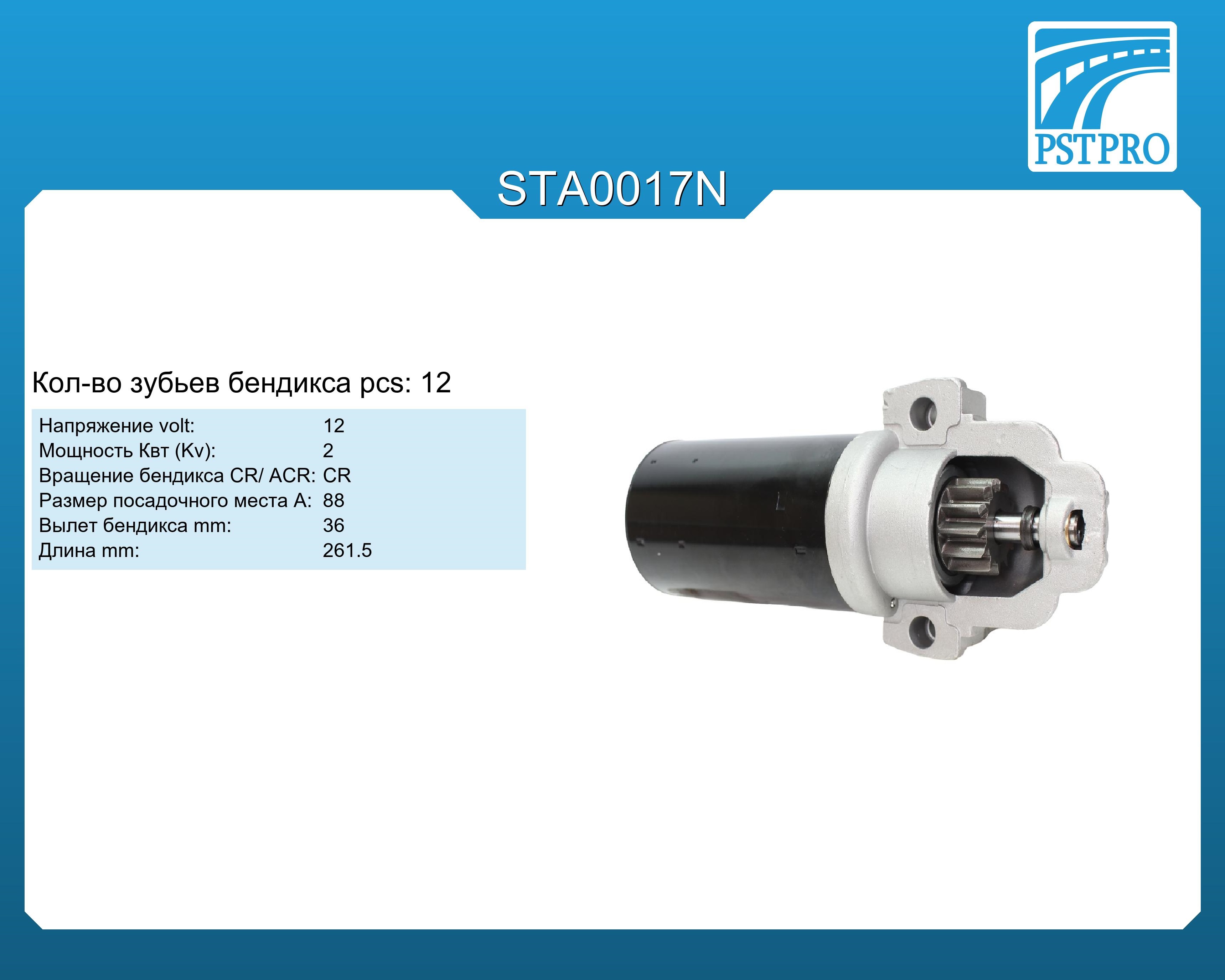 ХарактеристикиVolt: 12 Kv: 2 pcs: 12 Вращение: по часовой (CR) A: 88 Вылет бендикса: 36 Длина: 261,5