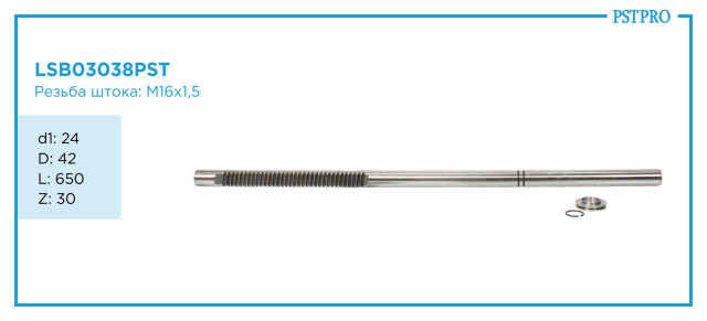 Характеристикиd1: 24 D: 42 L: 650 Z: 30 Резьба штока M16×1,5мм