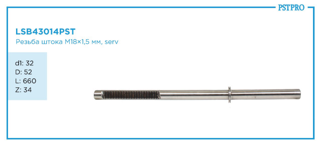 Характеристикиd1-32 D-52 L-660 Z-34 Резьба штока M18×1,5мм, SERV