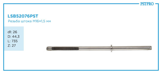 Характеристикиd1: 26 D: 44,3 L: 735 Z: 27 Резьба штока M16×1,5мм