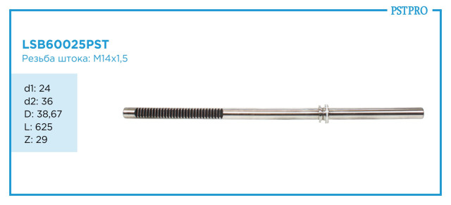 Характеристикиd1: 24 D: 38,67 L: 625 Z: 29 Резьба штока M14×1,5мм