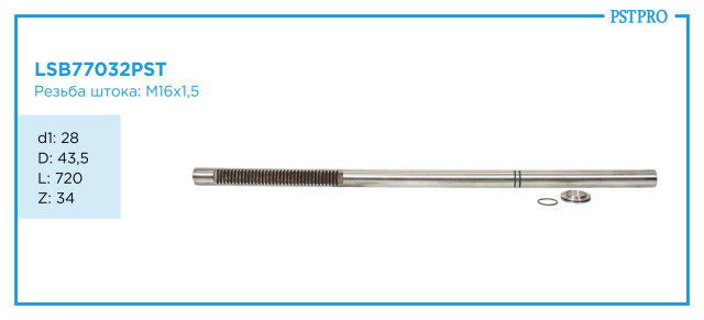 Характеристикиd1: 28 D: 44,6 L: 722 Z: 34 Резьба штока M16×1,5мм